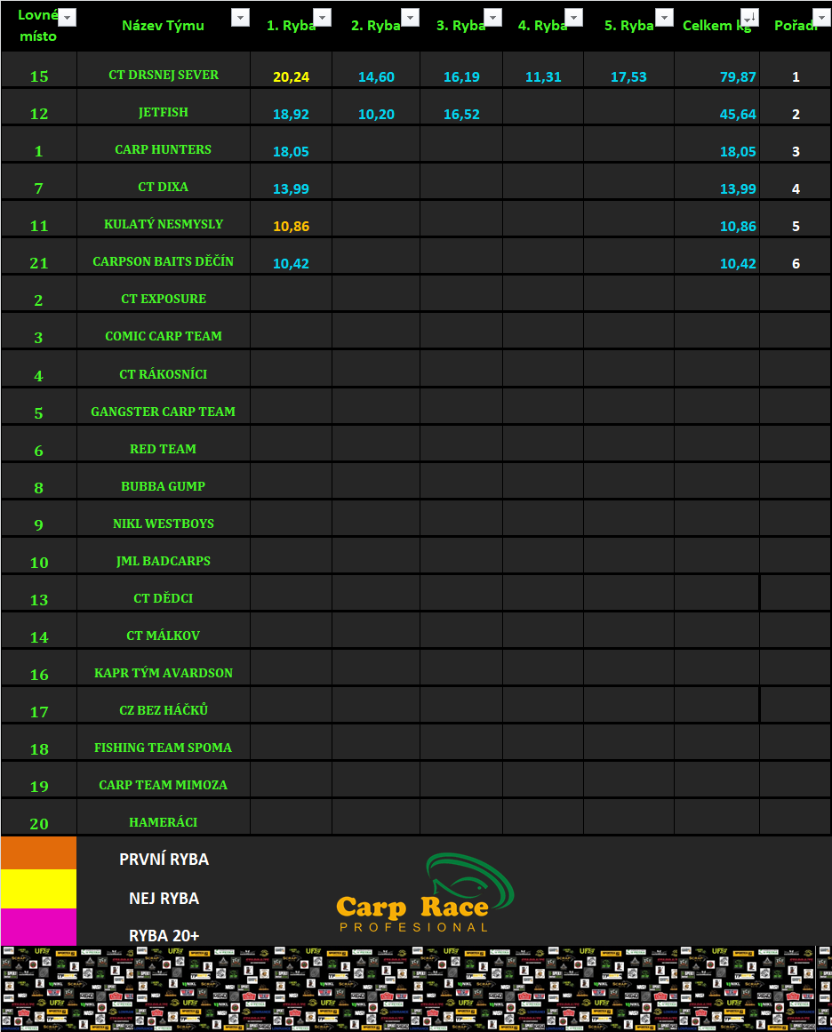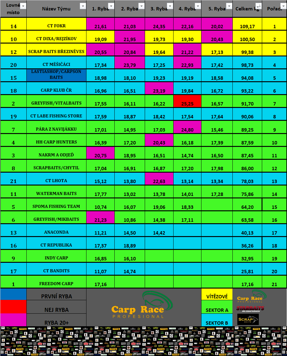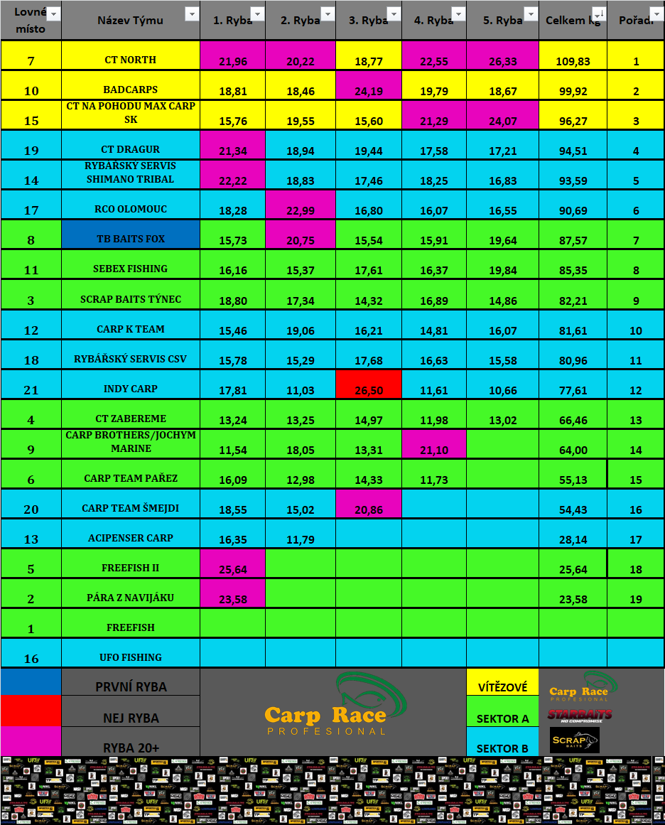 FINÁLNÍ VÝSLEDKY CARP RACE PROFESIONAL