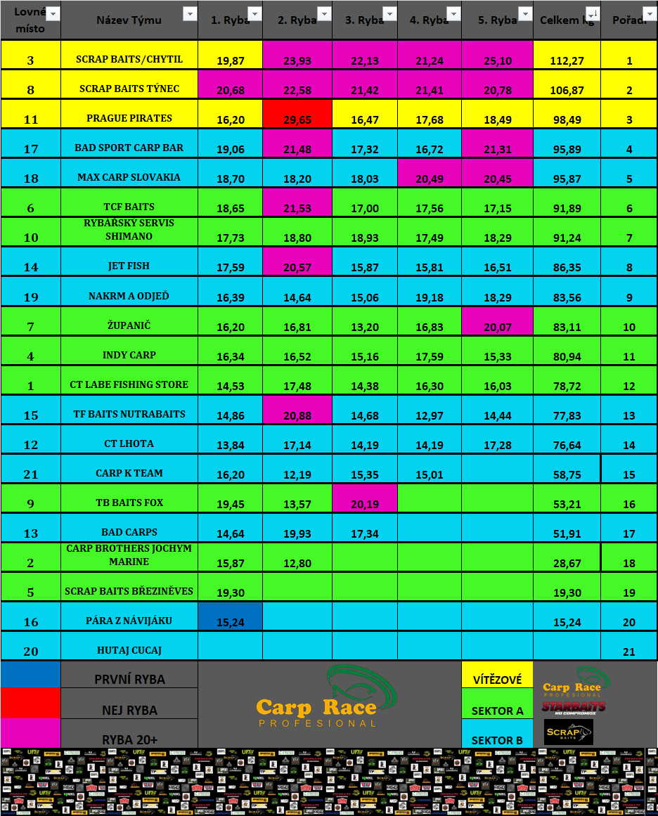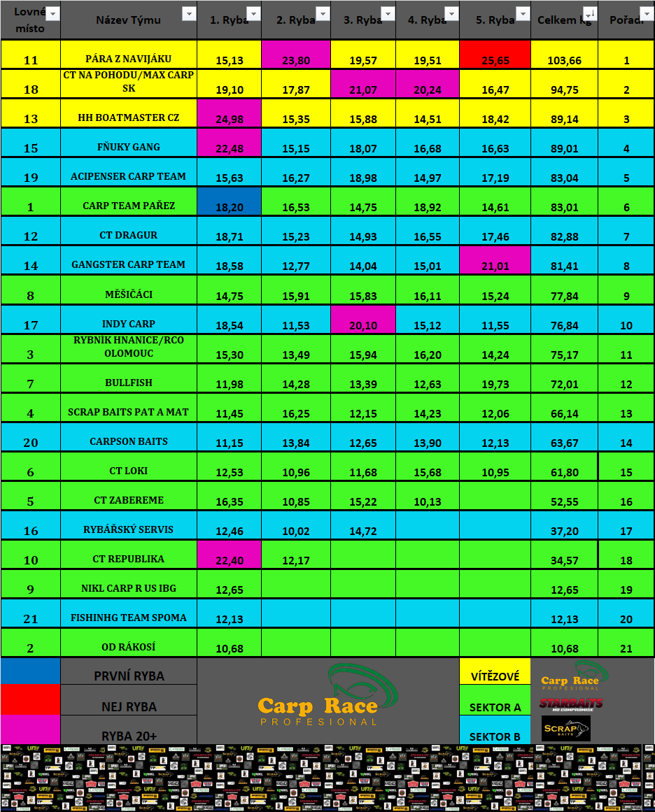 FINÁLNÍ VÝSLEDKY CARP RACE PROFESIONAL